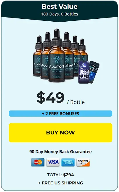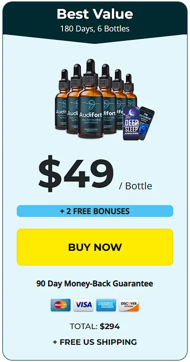 For long-term support, Audifort is best used for at least 3 to 5 months. That’s why most customers choose the 3-bottle or 6-bottle package to maximize results, enjoy discounts, and receive added bonuses like free shipping.